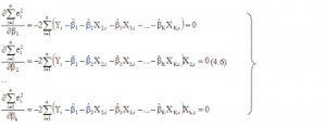 1. Mô hình hồi bội 2. Phương trình hồi qui bội của mẫu Phương trình y = a + b^! + … + bkxk được gọi là phương trình hồi qui bội của mẫu. Chúng ta cũng có thể tìm được nghiệm (a, bi,…, bk) bằng phương pháp ma trận, tuy nhiên dù phương